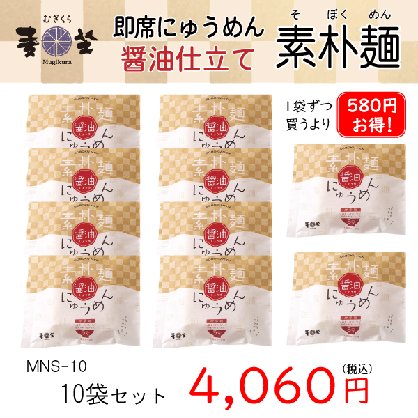 麦坐 即席 にゅうめん 素朴麺 醤油 10袋セット 手延べ むぎくらの麺 MNS-10