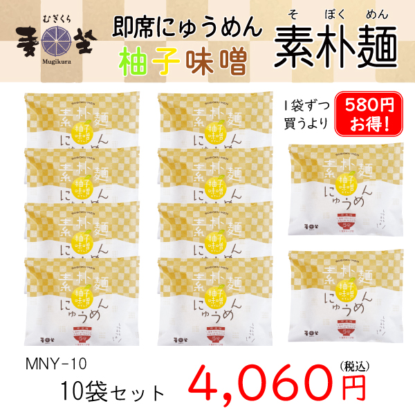 麦坐 即席 にゅうめん 素朴麺 柚子味噌 10袋セット 手延べ むぎくらの麺 MNY-10