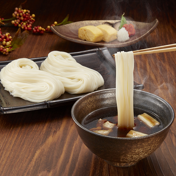 もっちもちの弾力、つるつるの食感、みずみずしい味わいを追求し作り上げたこだわりの手延べ麺です。ゆで上がりの麺の艶は格別。見て美しく、食べて美味しい、思わず笑みが出る。そんな むぎくらの麺「平麺」は1年を通じてどなたさまにもお喜びいただいております。そうめんより食べ応えがあり、うどんよりなめらかな舌触り。冷やせば麺のコシや弾力が際立ち、温めれば麺のつるつるした食感が楽しめるむぎくらの麺をぜひお召し上がりください。