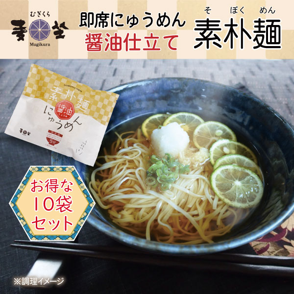 麦坐  即席 にゅうめん 素朴麺 醤油 10袋セット  手延べ  むぎくらの麺   MNS-10